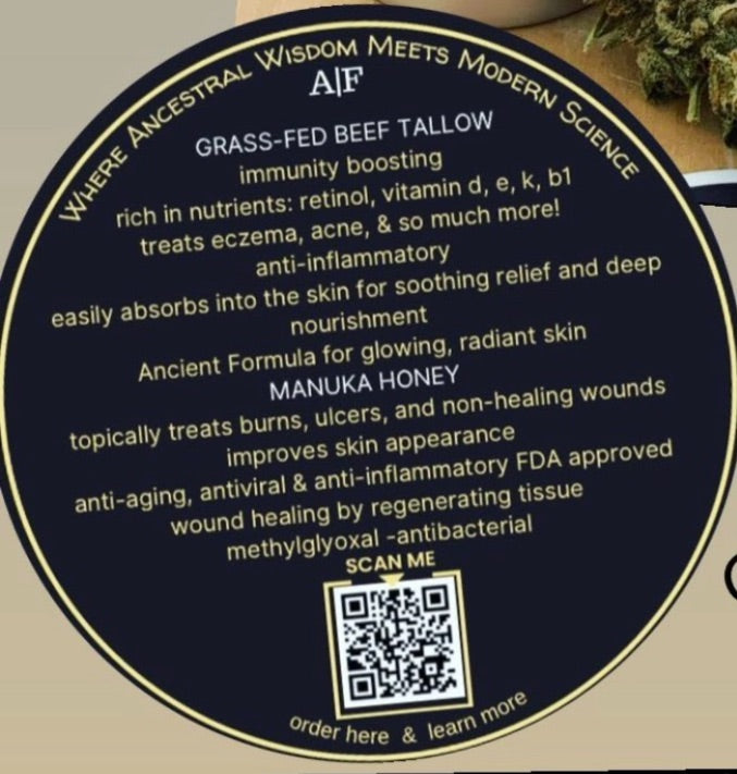 Surprisingly, Ben has found a way to suspend and utilize the non-wound healing nature of high K factor Manuka honey into Devonshire grass-fed tallow, and extra-virgin biodynamic olive oil, Michigan beeswax to seal the skin .